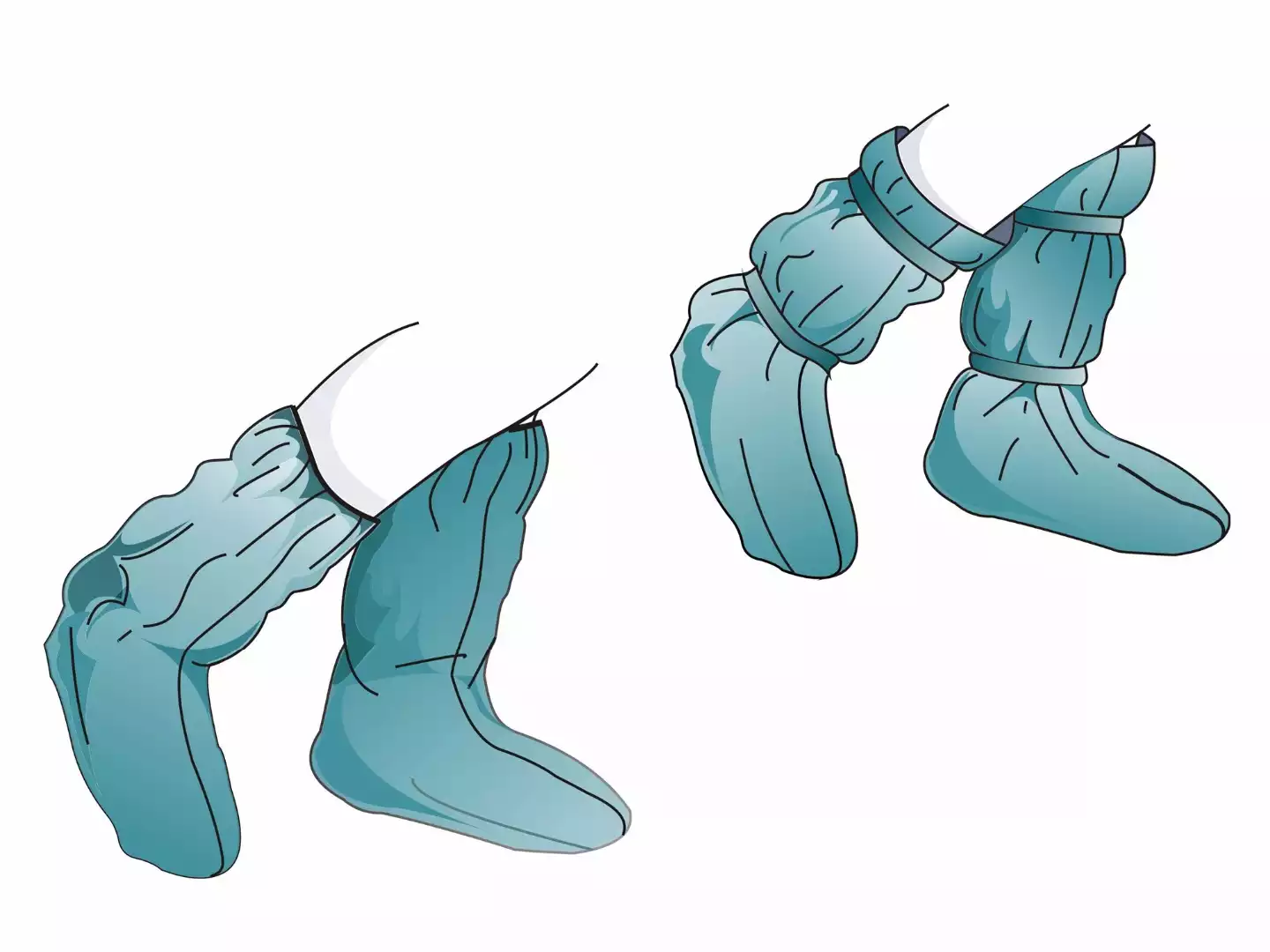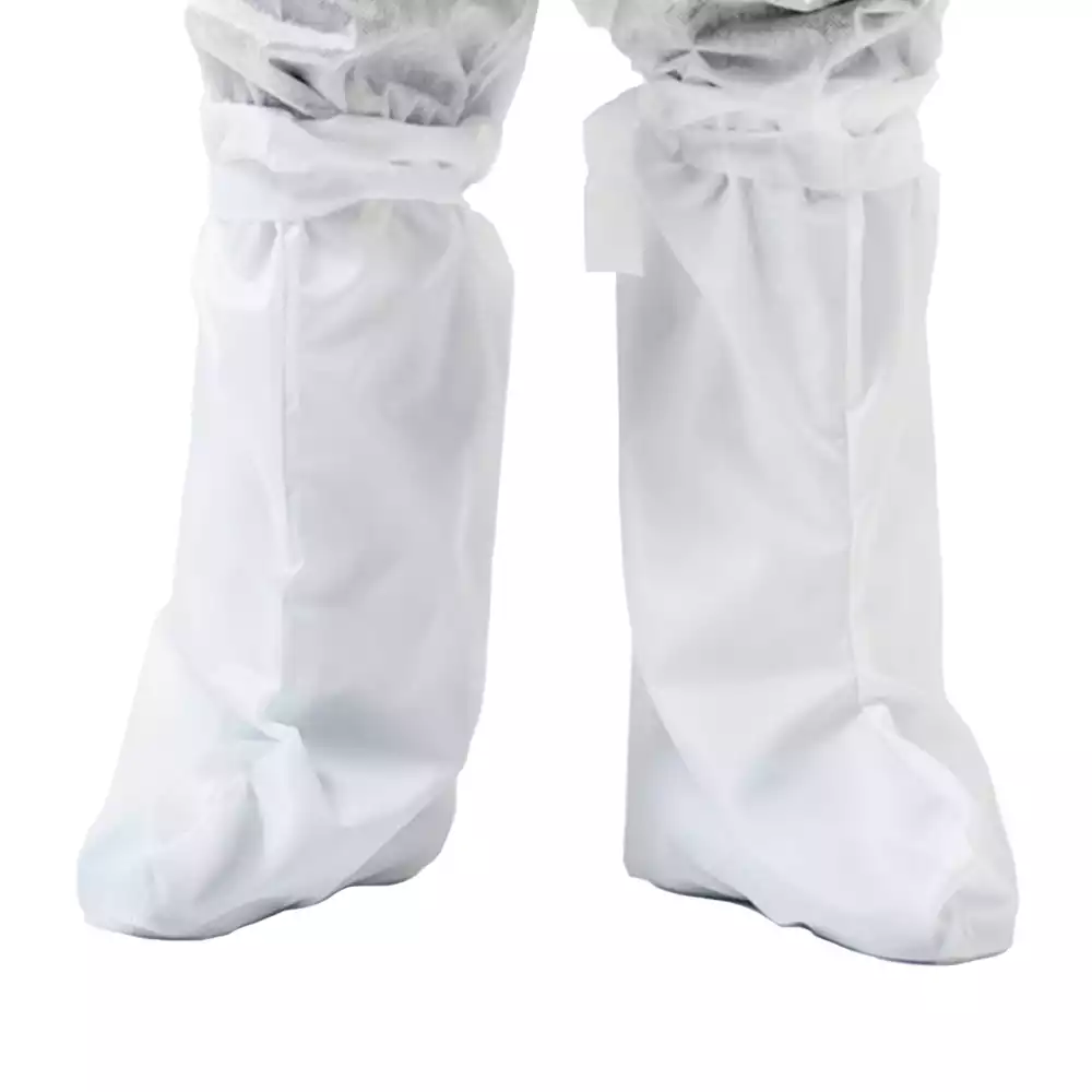 - Бахилы имеют высокую длину, покрывая ногу и часть голени, чтобы обеспечить полную защиту.