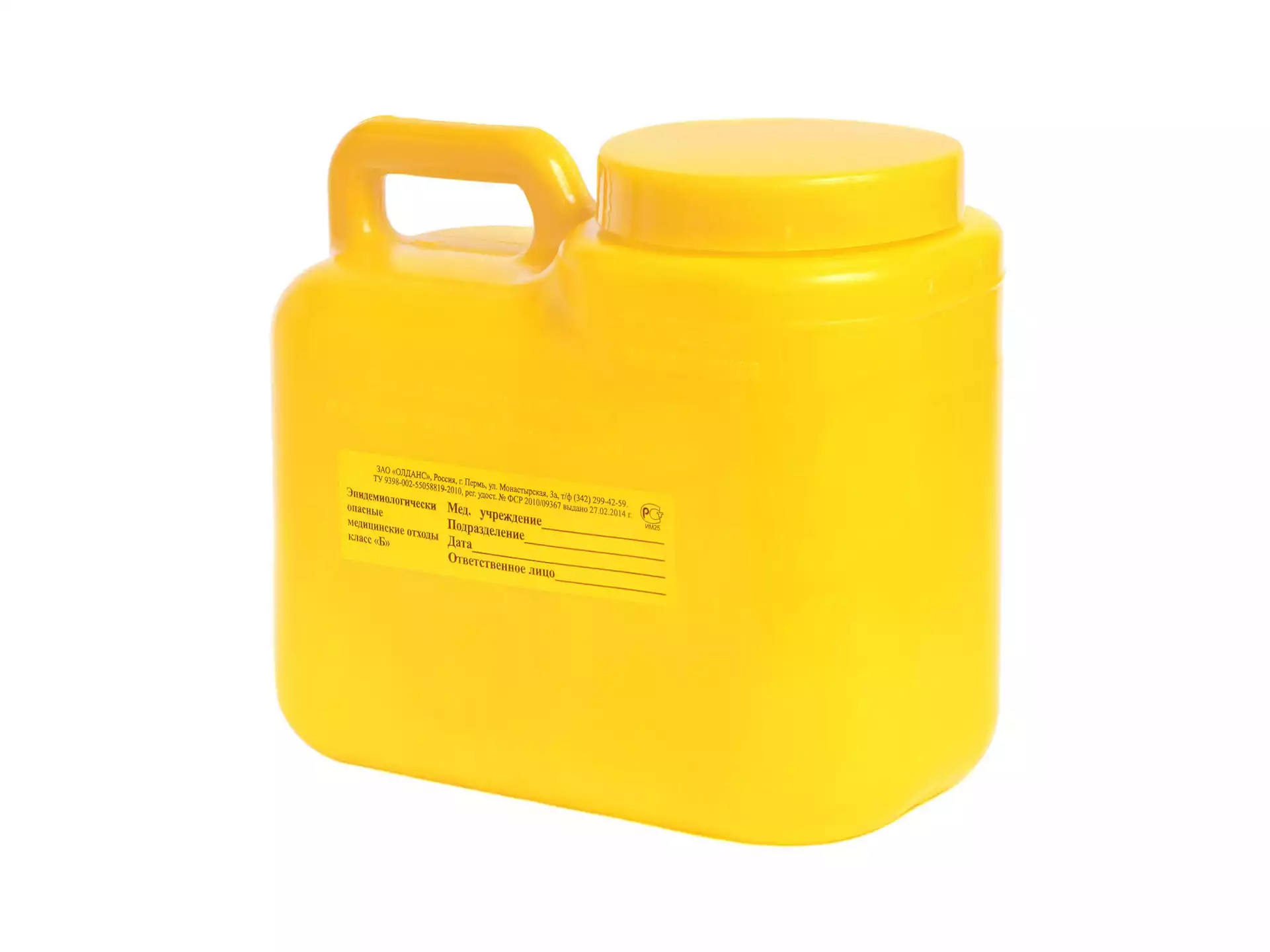 Емкость-контейнер для сбора био. материала (класс Б), объем 3,0л, одноразовая, резьбовая крышкаОЛДАНС (РОССИЯ)