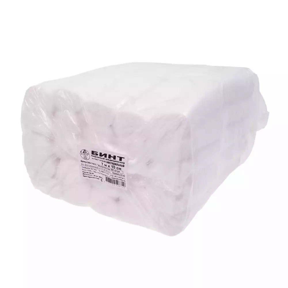 Бинты медицинские предназначаются для фиксации компрессов и повязок, для перевязок ран, для обездвиживания травмированных конечностей. Бинт древнейший элемент оказания медицинской помощи. Представляют собой ленту, свернутую в рулон. Длина и ширина ленты, а также намотка бывают разных размеров. Что позволяет отрезать необходимый для перевязки кусок без перерасхода. Широкая линейка стандартных размеров обеспечивает максимально рациональное использование перевязочных бинтов в повседневной практической медицине.