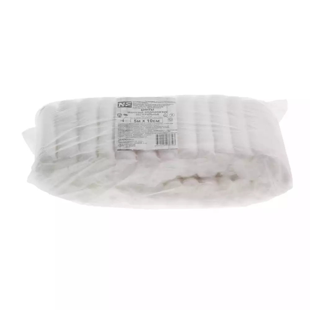 Бинт марлевый, размер 10см*5м, плотность 36г/м2, нестерильныйНавтекс ХБК (РОССИЯ), 20 шт