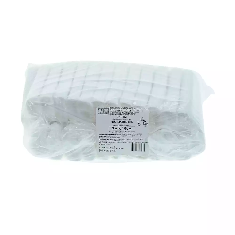 Бинт NF марлевый, размер 7м*10см, плотность 32г/м2, нестерильныйНьюфарм , 25 шт