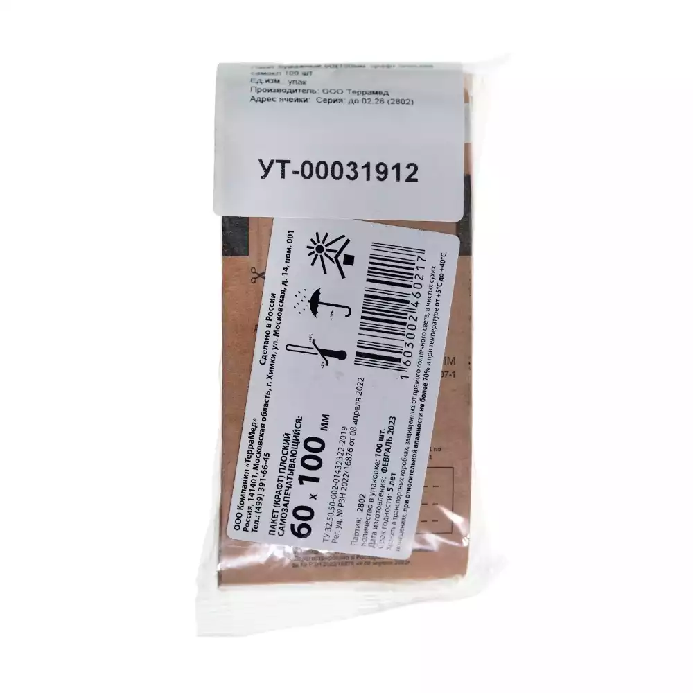 Пакет СтериТ, размер 300*390мм, комбинированный, самоклеющийся, упаковка 100штМедтест АО (РОССИЯ)
