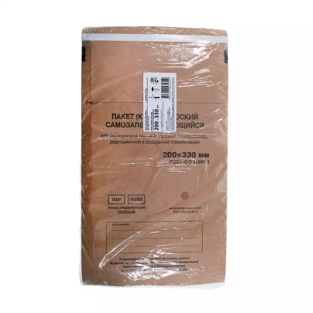 Пакет СтериТ, размер 100*200мм, бумажный, крафт, самоклеющийся, упаковка 100штВинар НПФ (РОССИЯ)