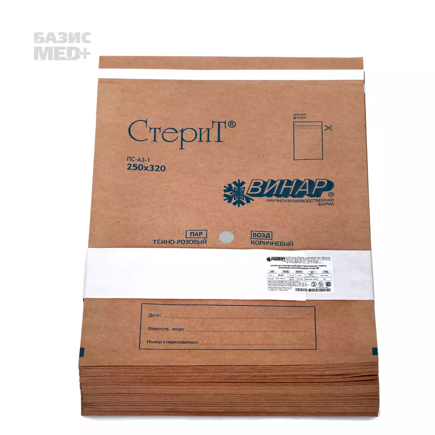 Пакет СтериТ, размер 150*300мм, бумажный, крафт, самоклеющийся, упаковка 100штВинар НПФ (РОССИЯ)