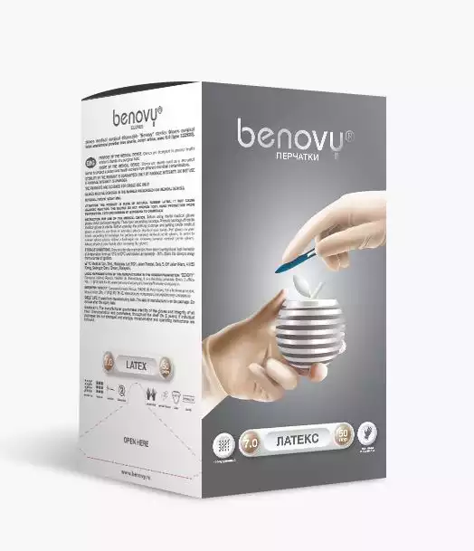 Перчатки BENOVY хирургические, размер 7,0, латексные неопудренные, текстурированные, стерильные, анатомической формы, цвет белый, 1 параTG Medical Sdn.Bhd. (МАЛАЙЗИЯ), 50 пар