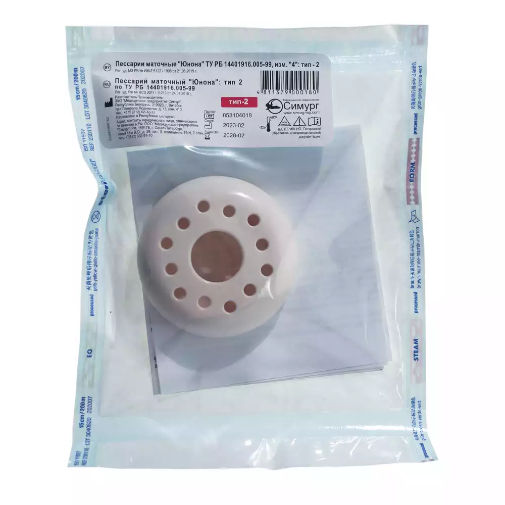 - Гипоаллергенный материал с высокой биосовместимостью, устойчивый к дезинфицирующим растворам. Силиконовые пессарии можно стерилизовать автоклавированием при температуре 121°С.