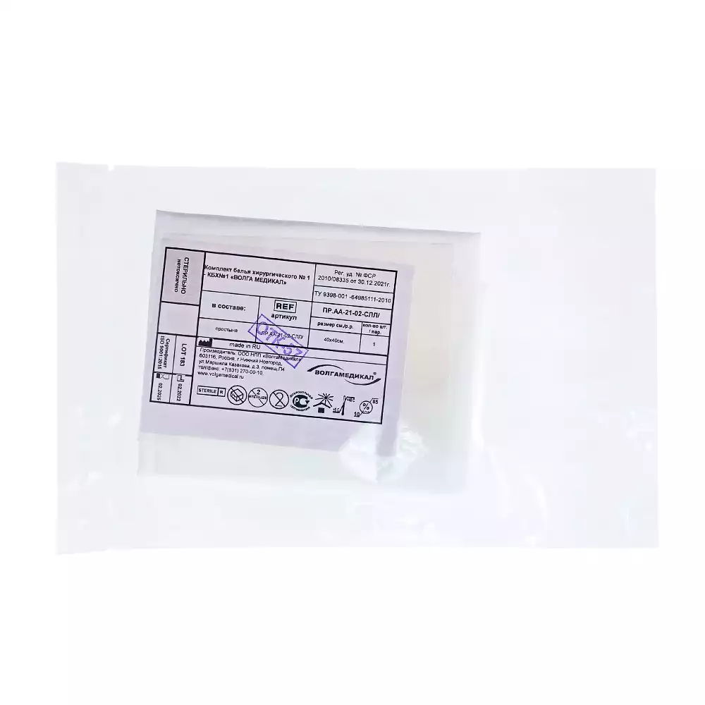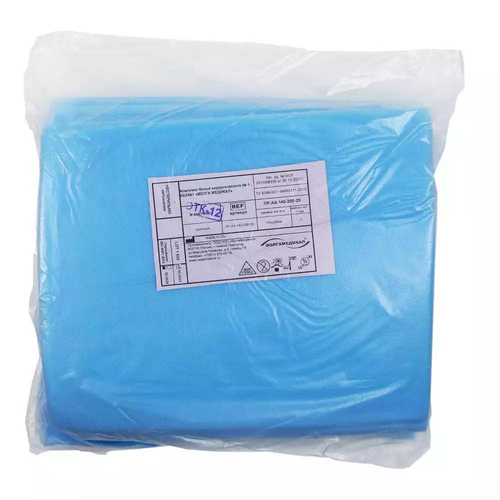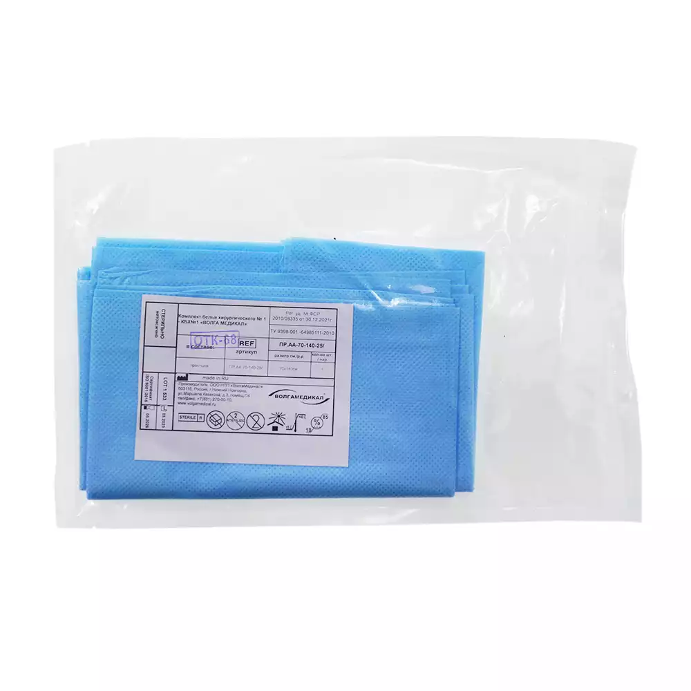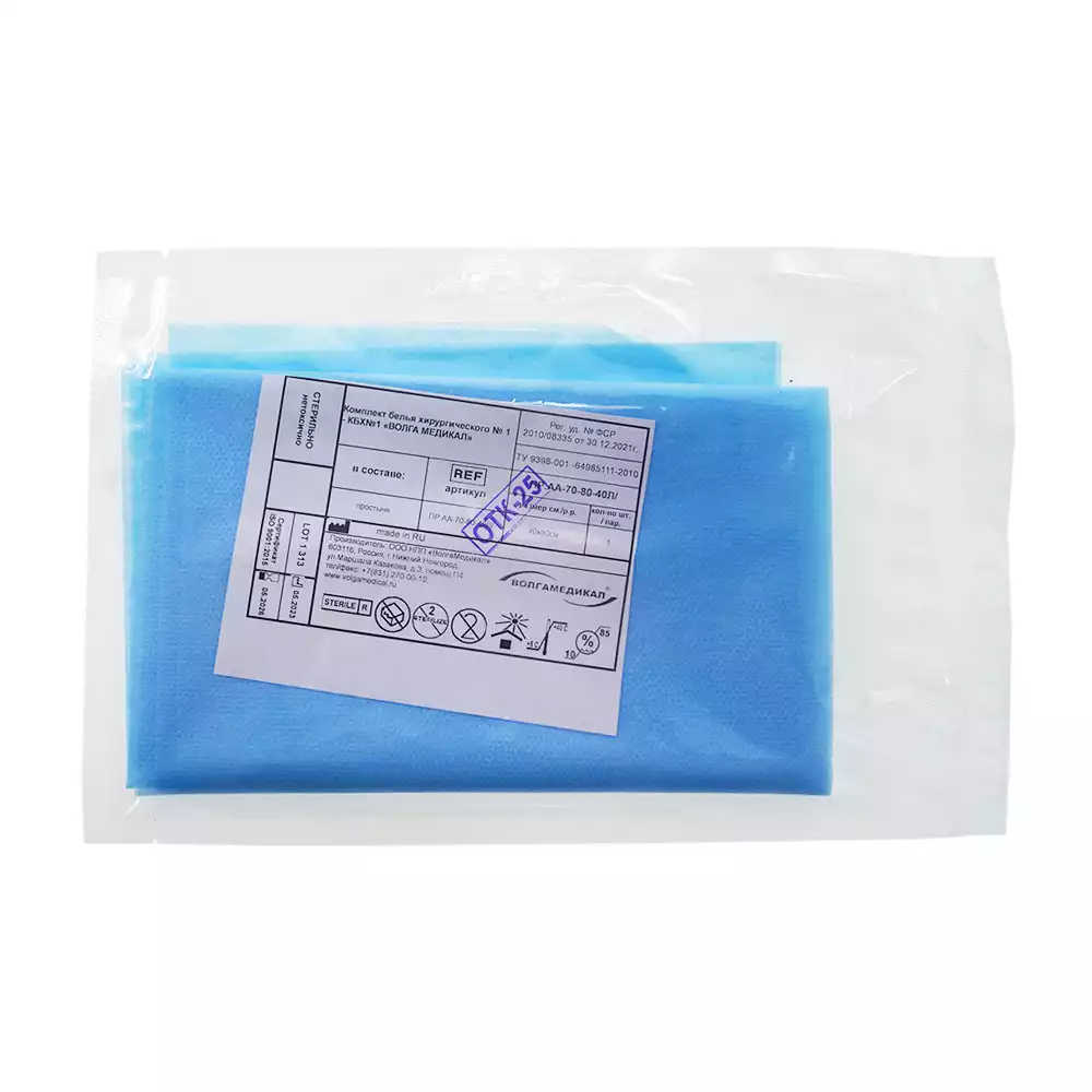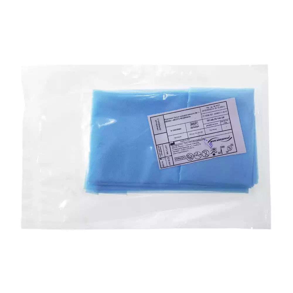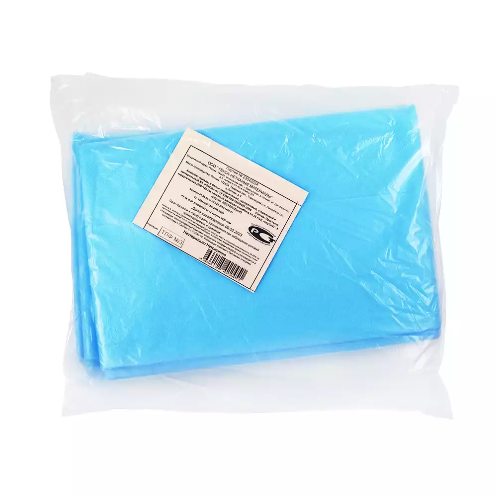 Простыня 70х80см, СМС 40г/м2 + ламинат, хирургическая, стерильная, голубаяВолга Медикал НПП (РОССИЯ)