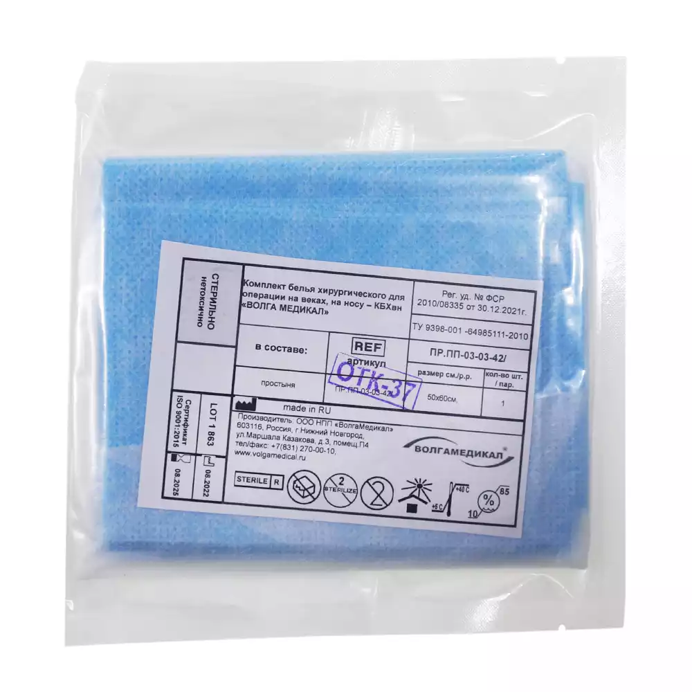 Простыня 70х80см, СМС 25г/м2, хирургическая, стерильная, голубаяВолга Медикал НПП (РОССИЯ)
