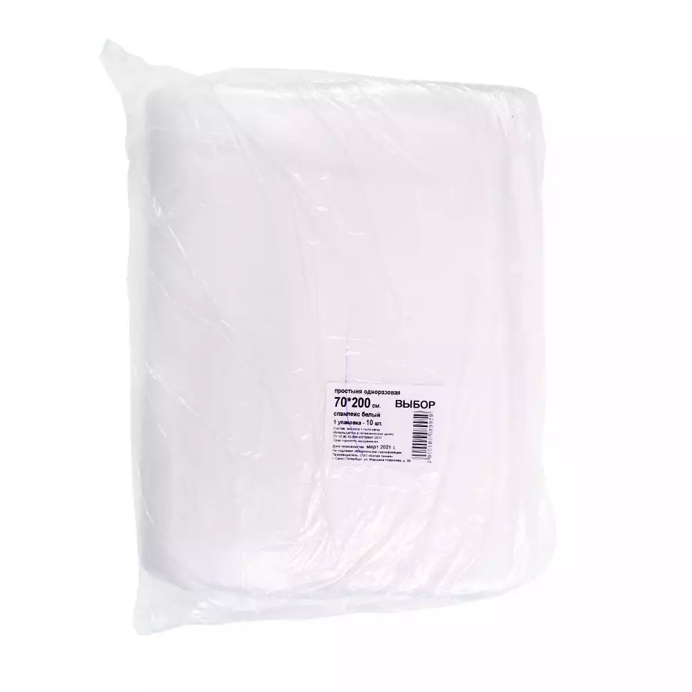 Простыня 70*200см, материал спанлейс 40г/м2 Выбор, нестерильная, белаяБелая линия (РОССИЯ)