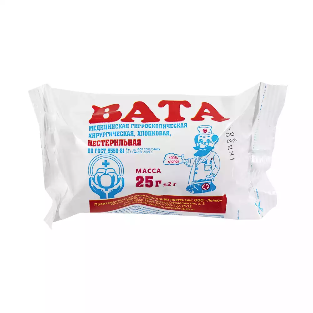 • Поглощение крови и других жидкостей: Благодаря своей поглощающей способности, вата может использоваться для удаления крови или других жидкостей с поверхности кожи или из ран.