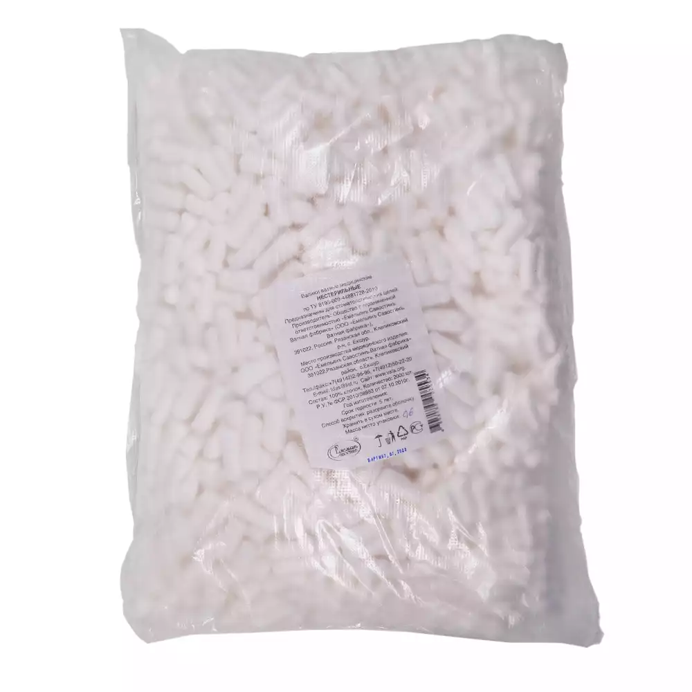 Тампон дентальный (валики ватные) медицинский, размер 25мм*10мм №500, нестерильныеЕмельянъ Савостинъ ВФ (РОССИЯ)