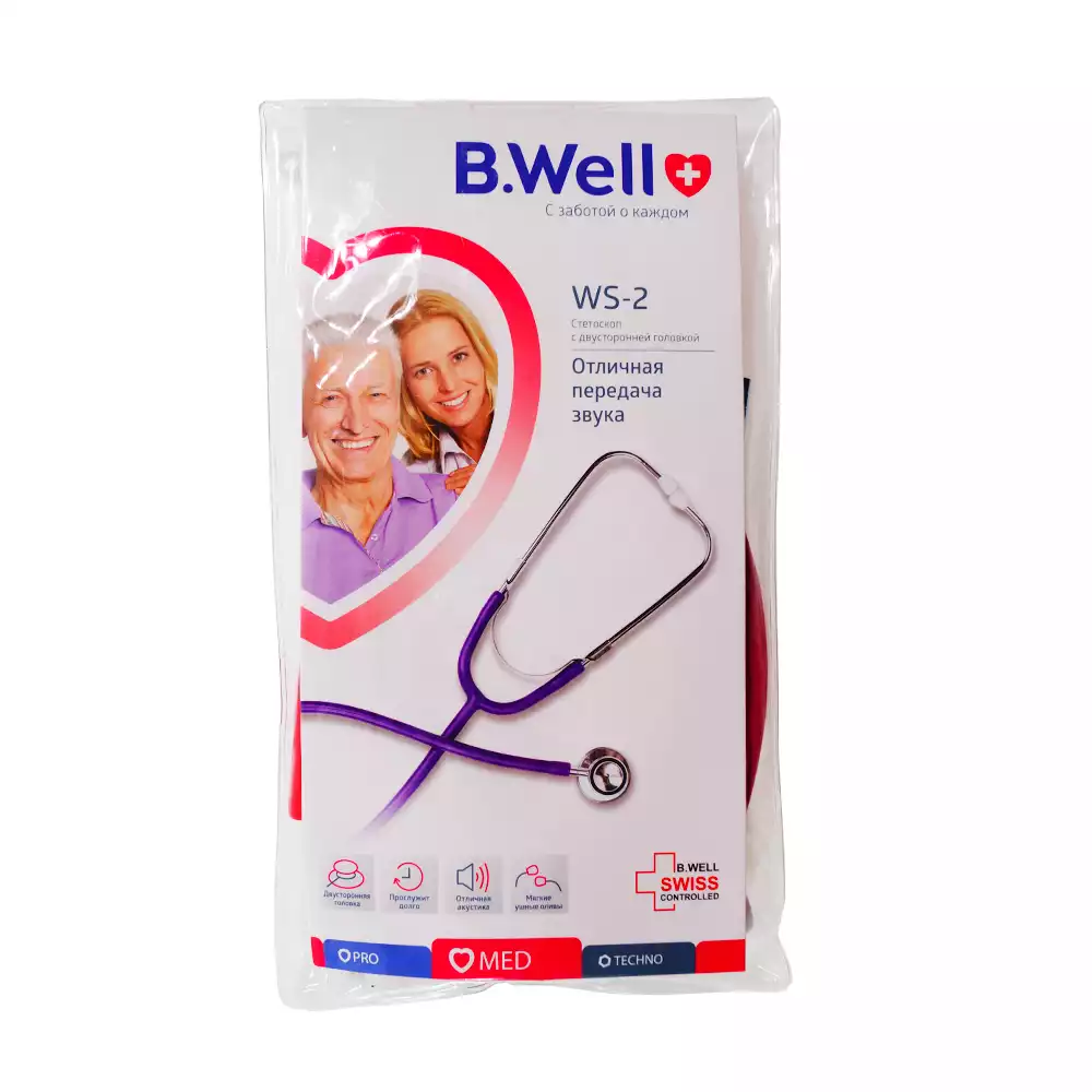 B.Well WS-2 стетоскоп с многофункциональной двусторонней головкой, идеальный для профессионального применения. Благодаря правильной форме головки, высокочувствительной мембране, плотной литой звукопроводящей трубке, исключающей помехи, стетоскопы B.Well обладают отличной акустикой.